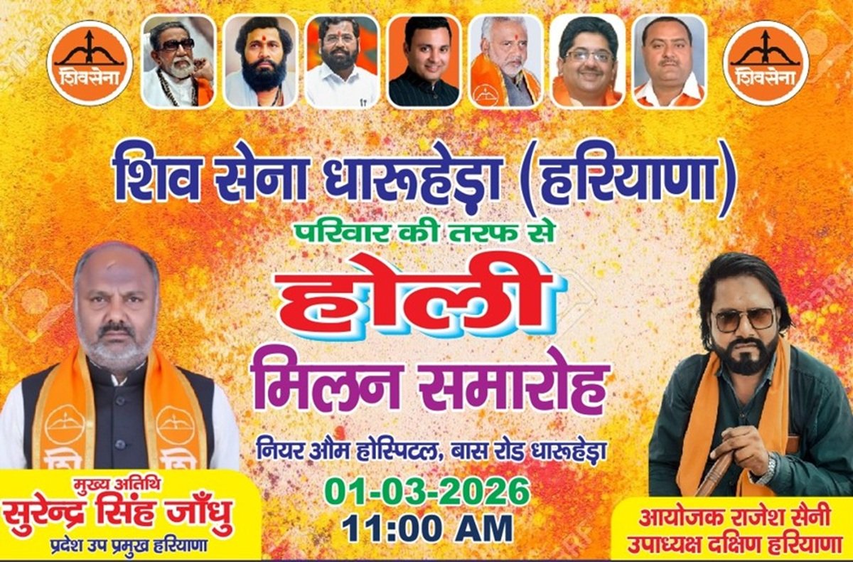 Dharuhera News: धारूहेड़ा: यहां के नंदरामपुर बास रोड पर शिव सेना की ओर से होली मिलन समारोह मनाया जाएगा।